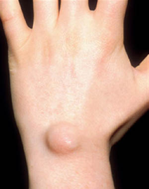 Ganglion cysts are noncancerous lumps that most commonly develop along the tendons or joints of your wrists or hands. They also may occur in the ankles and feet. Ganglion cysts are typically round or oval and are filled with a jellylike fluid.